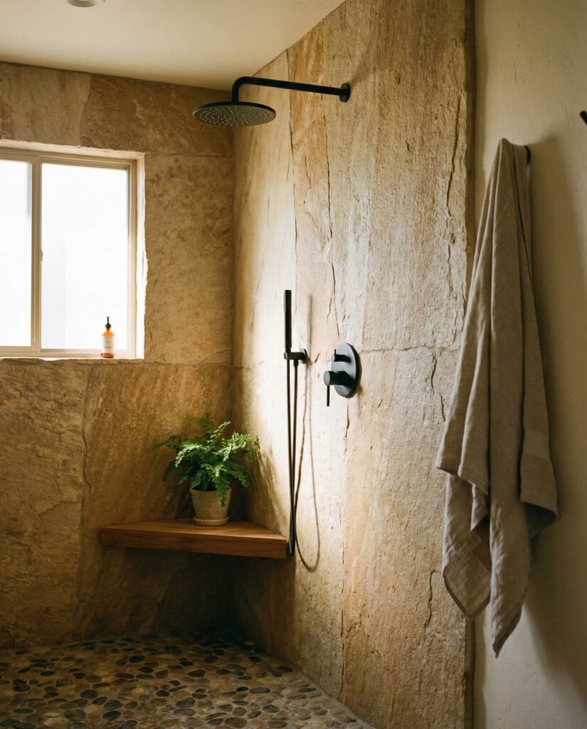 A Rustic walk-in shower built with natural Stone materials offers tactile warmth and authenticity. This Ideas approach is popular in homes seeking a retreat-like atmosphere, from suburban remodels to countryside builds. Designers balance rough textures with smooth fixtures and thoughtful lighting. I’ve noticed that homeowners drawn to this style often value longevity and a connection to nature over fleeting trends. Using earth-toned Tile ideas color schemes and durable Floor ideas, a rustic stone walk-in shower feels grounded and deeply personal.