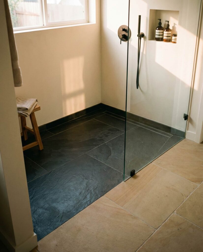 Using contrasting Floor ideas is one of the more subtle walk-in shower Ideas gaining popularity. Designers differentiate the shower zone with a slightly darker or textured floor while keeping surrounding areas light and continuous. This visual cue improves safety and zoning without physical barriers. I’ve seen this technique work beautifully in both compact layouts and Large master bathrooms, especially when paired with restrained Decor. Careful attention to Dimensions and material transitions ensures the contrast feels elegant rather than abrupt.