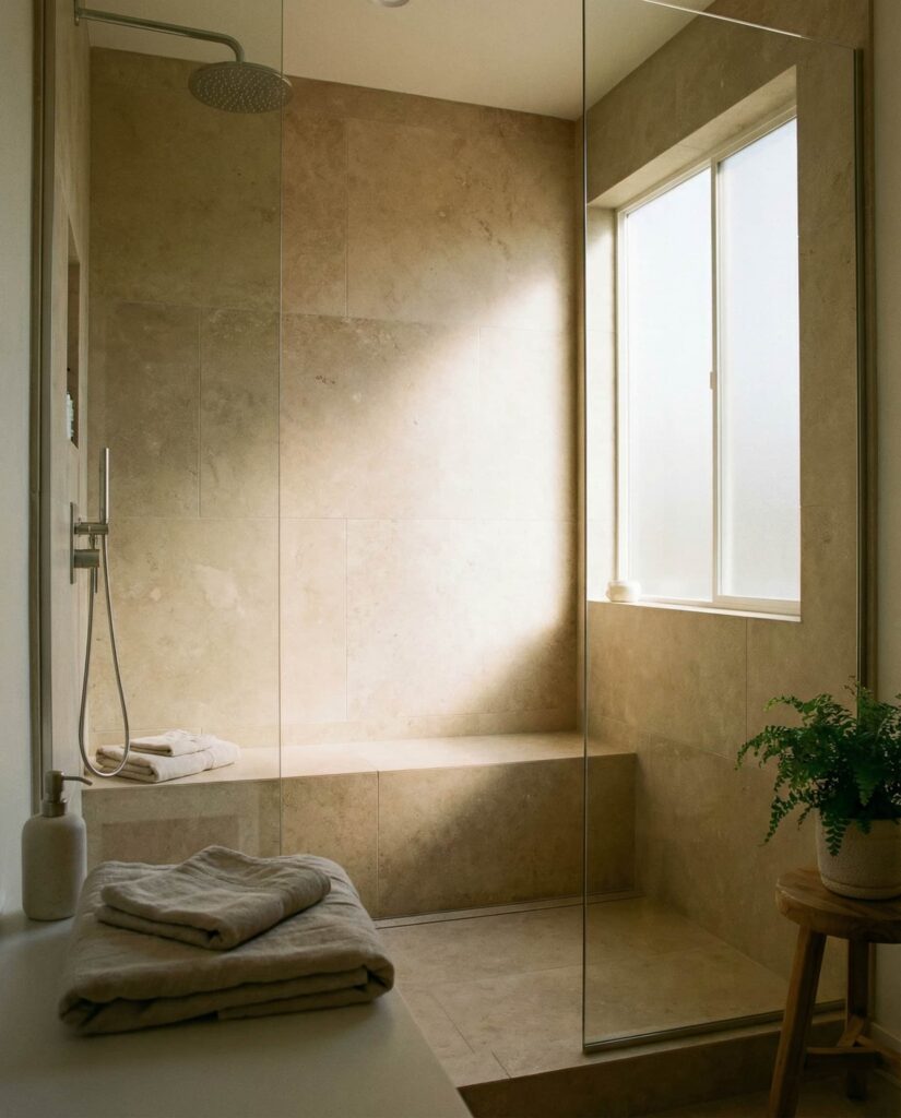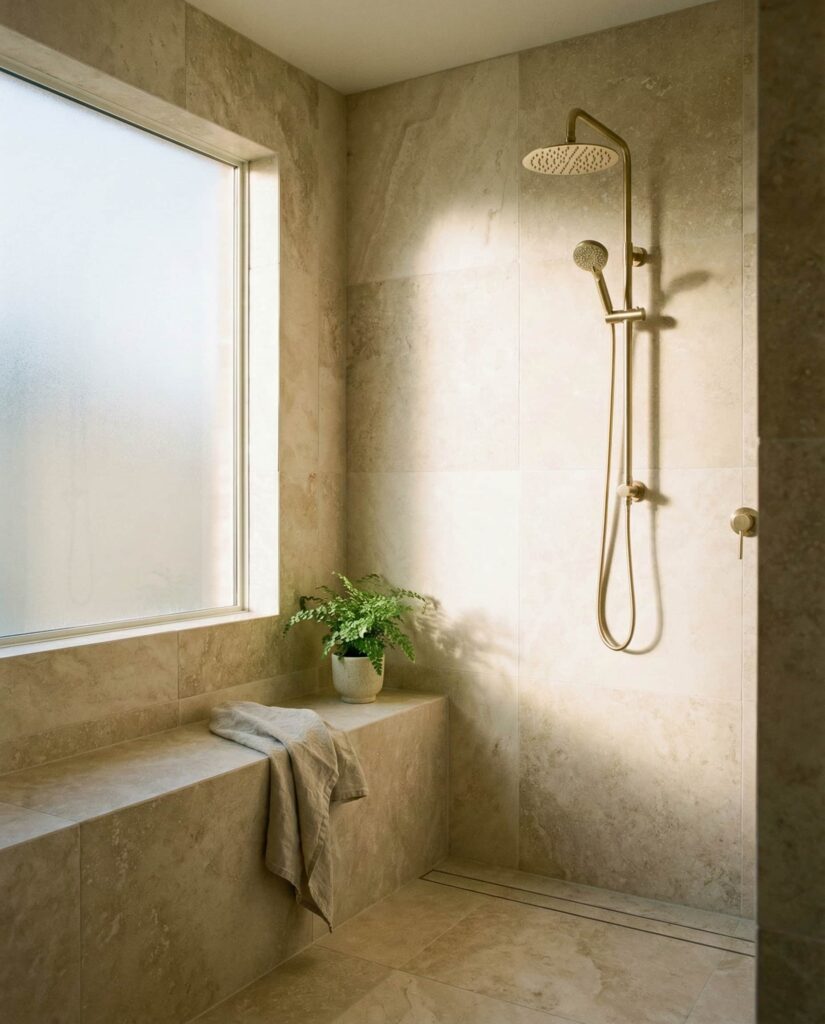 4. Walk-In Shower with Natural Window Light