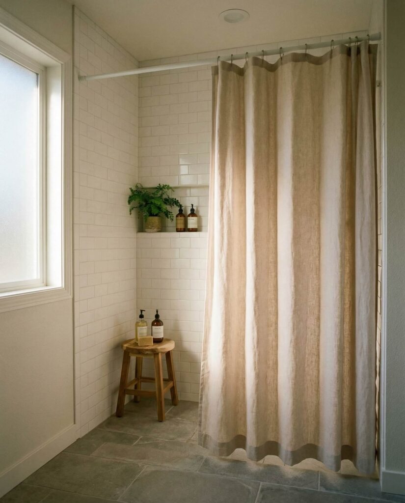 Using a Curtain instead of rigid barriers is a flexible walk-in shower Ideas choice gaining renewed interest. It offers privacy when needed while maintaining an open layout the rest of the time. This solution is budget-friendly and appeals to homeowners exploring partial Diy updates without full renovations. Designers recommend high-quality, mold-resistant fabrics and ceiling-mounted tracks for a tailored look. I’ve noticed this approach works especially well in transitional homes where style preferences may change over time. Paired with clean Floor ideas and understated Decor, a curtain can feel intentional rather than temporary.