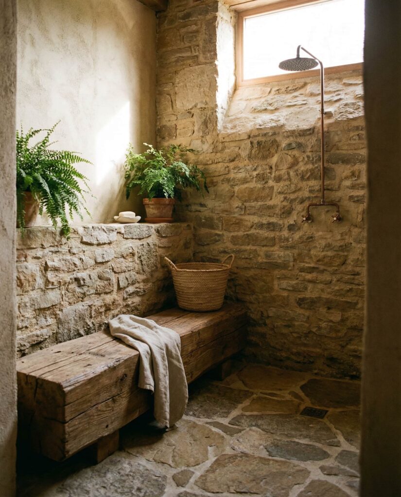 8. Rustic Stone Walk-In Shower