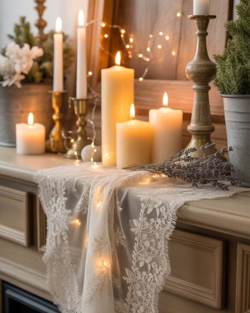 Nothing says winter comfort like soft candlelight over a fireplace. Arrange candles in varying heights, add lace runners, and sprinkle subtle Christmas with lights for a dreamy glow. These ideas diy bring cozy intimacy to long January evenings, reminiscent of old-world French country romance.