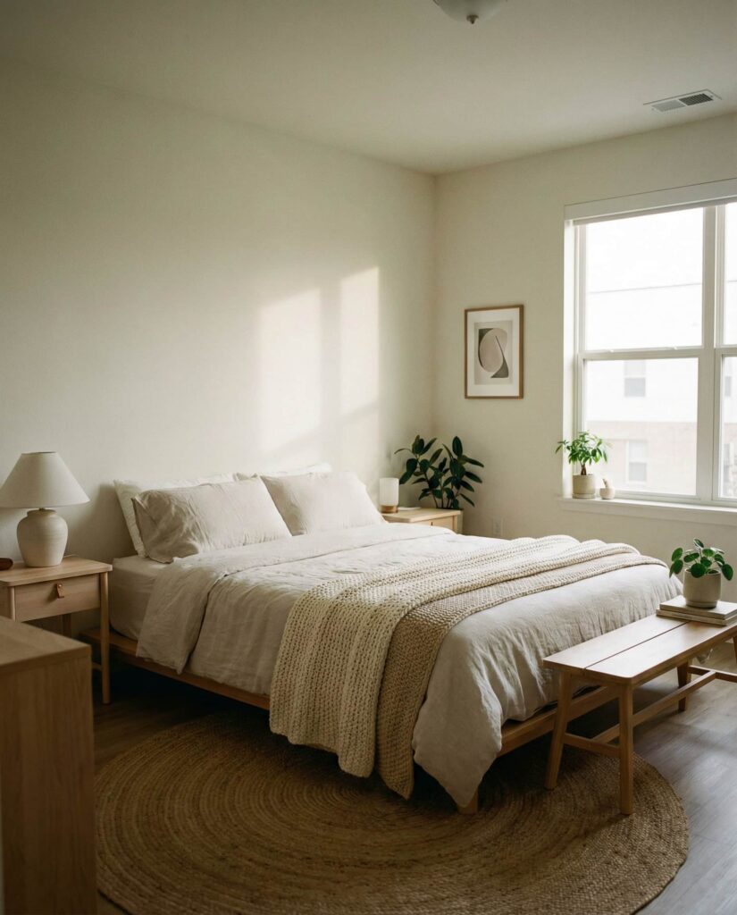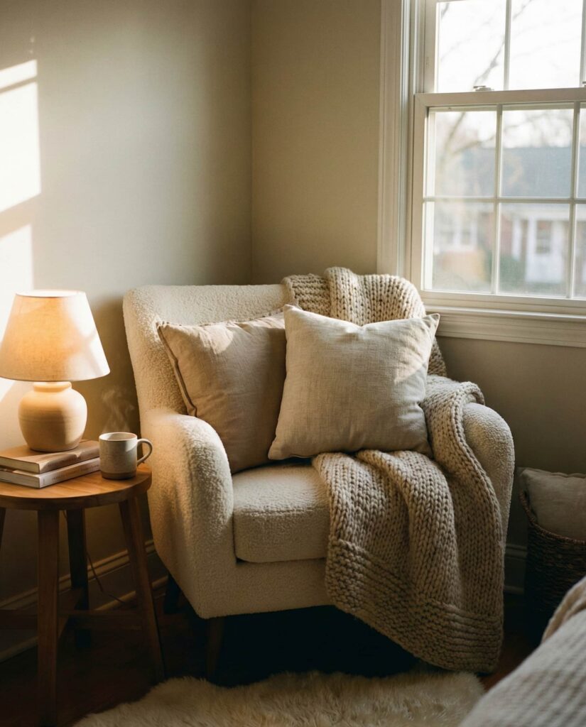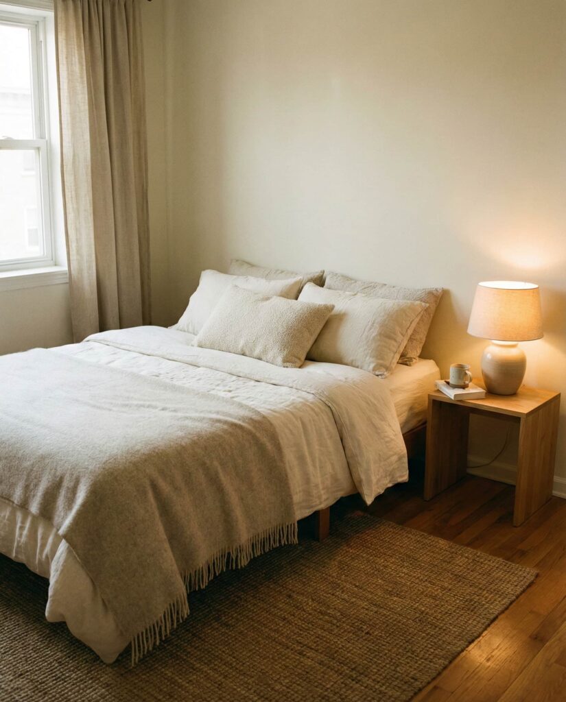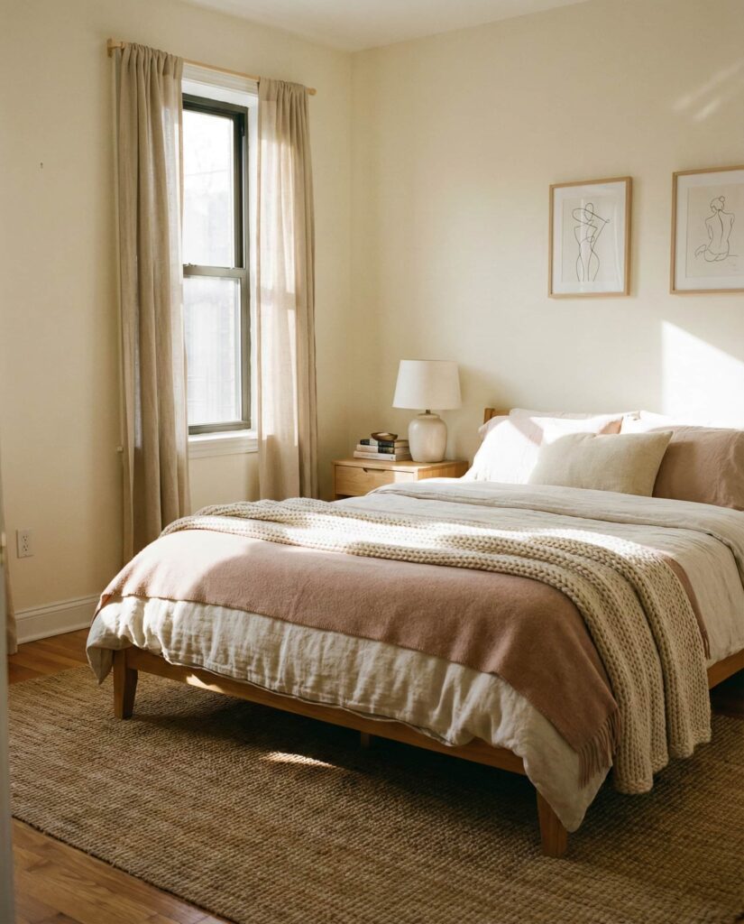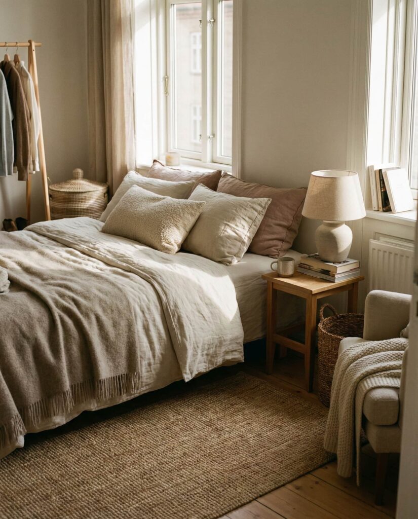 This idea prioritizes comfort through purpose, integrating reading nooks into ideas cozy bedroom layouts. Soft lighting, plush seating, and layered textiles create a retreat within a retreat. I’ve noticed many women redesign bedrooms to support quieter hobbies, especially in shared homes. The design remains simple, allowing books and textures to define the mood. It’s especially fitting for Ideas single cozy lifestyles where the bedroom serves multiple emotional needs.