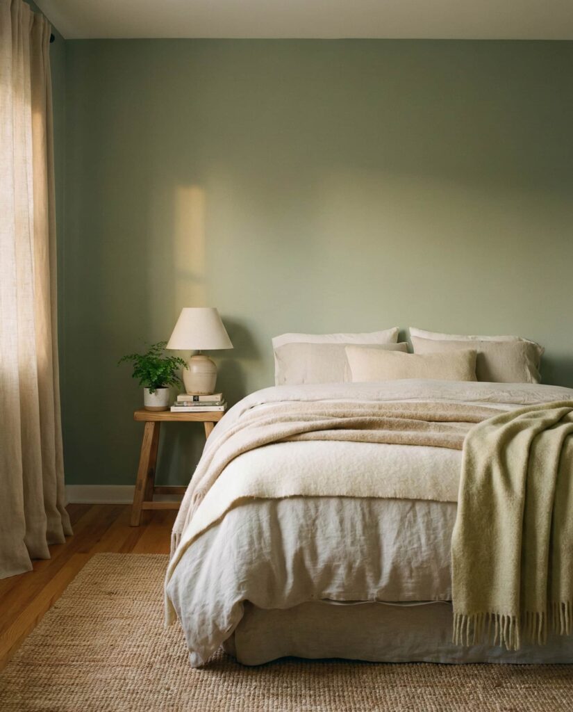 This idea centers on emotional balance, blending ideas grown comfort with nature-inspired color schemes that support rest and recovery. Soft sage and olive tones create a calming base that works beautifully for woman bedrooms focused on wellness rather than trends. I’ve noticed many designers, including contributors at House Beautiful, recommend green for stress relief. Paired with breathable fabrics, subtle wall art, and organic design, the room feels restorative without looking themed. This approach fits both houses and Ideas apartment spaces, offering a timeless alternative to neutrals while staying grounded in thoughtful interior design.