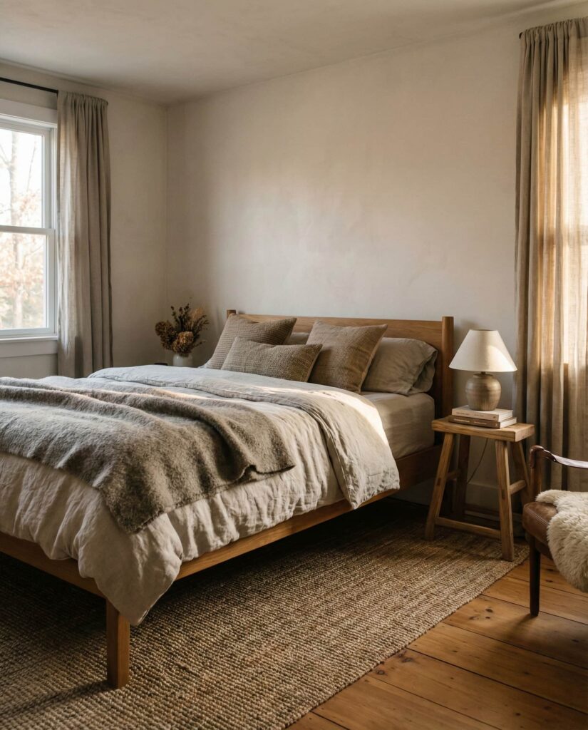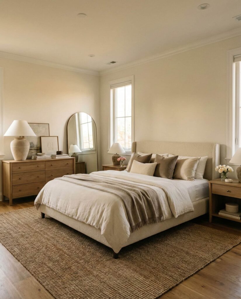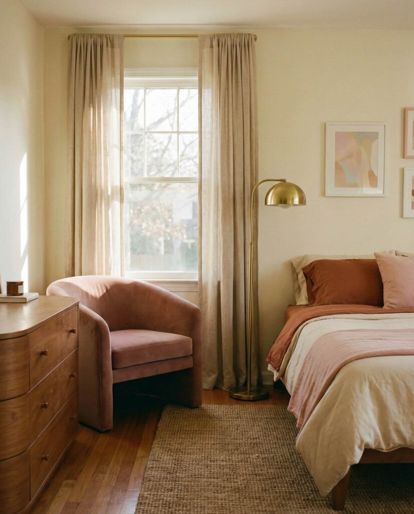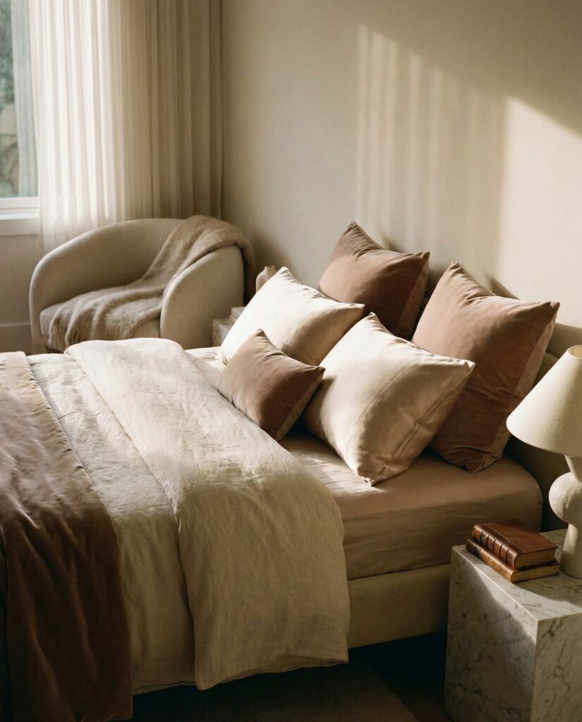 This idea leans into ideas cozy living by combining earthy Neutral tones with tactile materials that feel grounding and honest. It’s a style I’ve seen many homeowners gravitate toward after experimenting with bolder looks, because it brings a sense of calm without feeling empty. Clay, sand, and warm taupe color schemes work beautifully in woman bedrooms, especially when paired with natural textiles and restrained decor ideas. The design favors balance over statements, making it suitable for both houses and Ideas apartment layouts. Influenced by editors at House & Garden, this approach feels lived-in, emotionally steady, and quietly sophisticated—an ideal everyday retreat rooted in thoughtful interior design.