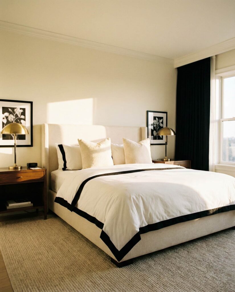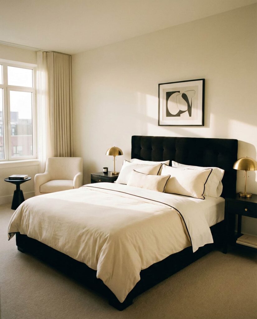 This concept draws from boutique hospitality, blending Ideas grown classy black elements with creamy neutrals for contrast. The result feels polished but approachable, ideal for women who enjoy structure and visual clarity. Clean bedding, symmetrical designs, and restrained decor create order, while soft lighting prevents stiffness. I’ve noticed many homeowners replicate hotel aesthetics to simplify daily routines. This style suits master suites and ideas luxury bedrooms where calm elegance matters more than decoration.