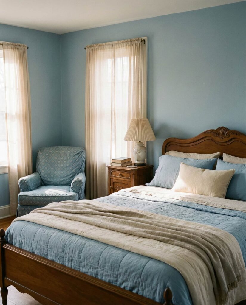 This style revisits Blue as a timeless choice, pairing it with traditional forms and modern restraint. The effect feels familiar yet refreshed, appealing to women who value continuity in their homes. I’ve often seen designers recommend blue for its versatility across ages. Layered bedding, subtle patterns, and thoughtful paint ideas create comfort without nostalgia. It’s an easy choice for those wanting dependable elegance in their woman bedrooms.