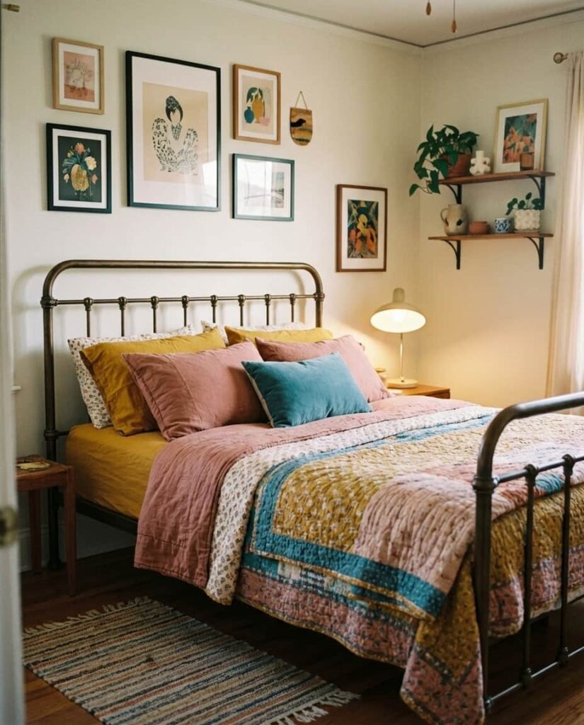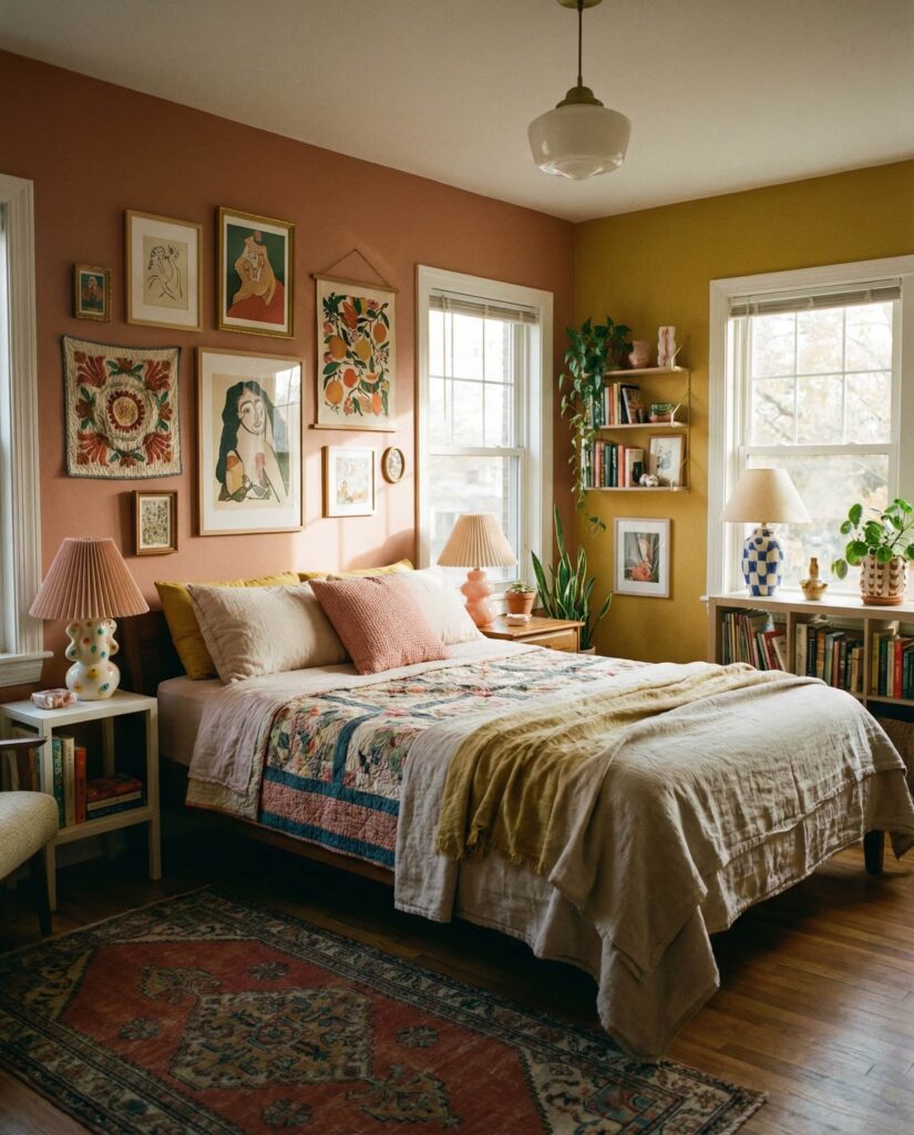 For women drawn to creativity, Colorful bedrooms offer emotional energy without chaos. This idea uses curated Ideas color schemes rather than random shades, blending personality with thoughtful interior design. I’ve noticed homeowners often use this style to display meaningful wall art, travel finds, or even a cozy corner for a beloved Cat. The result feels lived-in yet intentional. Designers from Domino often recommend starting with one anchor color and building outward, keeping the room expressive but cohesive.