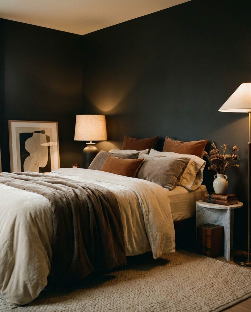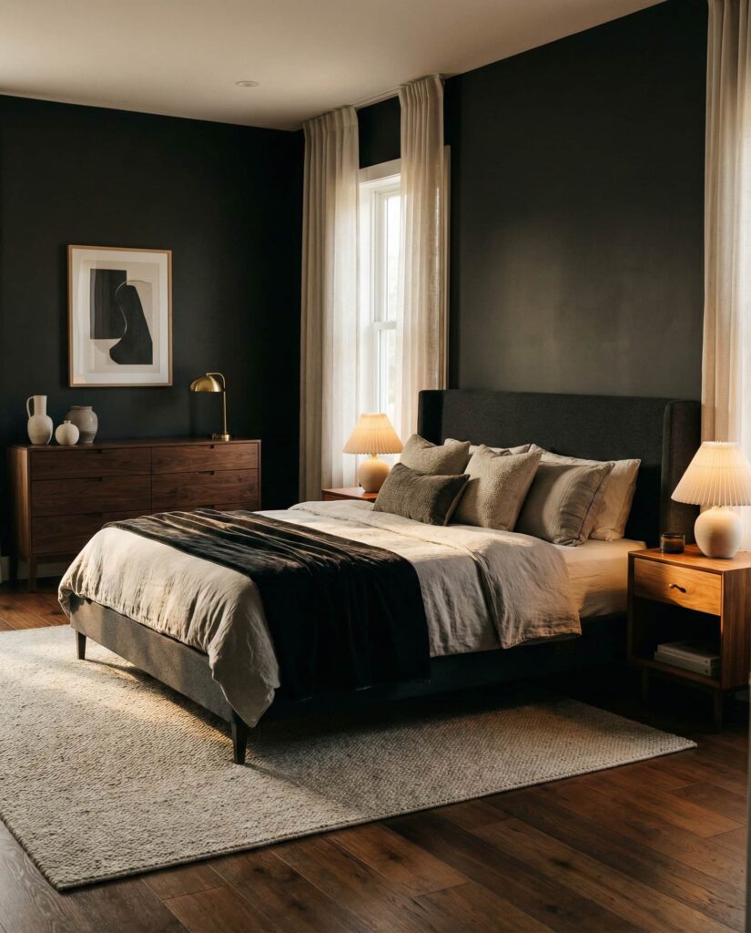 Ideas grown classy black bedrooms rely on contrast rather than darkness. Black elements anchor the space, while warm woods and soft fabrics keep it livable. This style often appeals to women who appreciate fashion-forward designs and strong visual statements. I’ve seen it used effectively in ideas luxury settings where confidence and clarity matter. When paired with thoughtful lighting and minimal decor, black becomes elegant rather than overwhelming, offering a bold yet timeless bedroom solution.