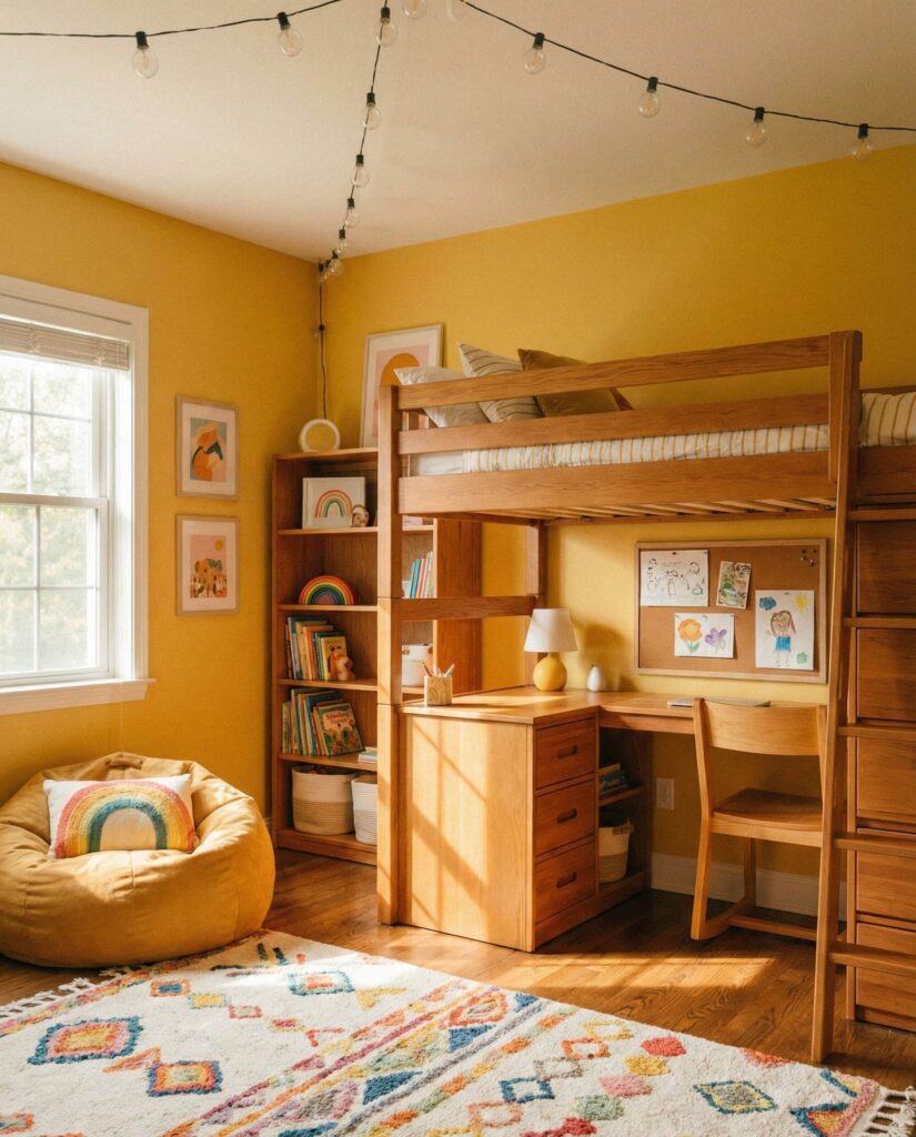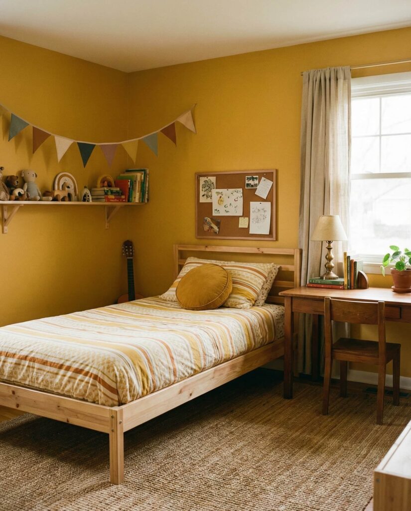 A Golden yellow bedroom feels energetic and optimistic, making it ideal for kids and for boys or girls transitioning into Teens years. Designers often suggest balancing this shade with Brown and wood tones or even Red and playful details to avoid overstimulation. I’ve seen parents favor this approach because it grows with the child, adapting easily as tastes change. The result is cheerful but practical, with enough flexibility to evolve.