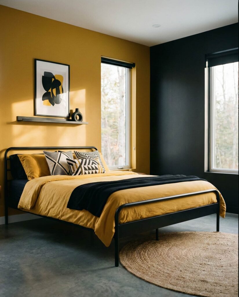Combining Black and yellow brings a bold, graphic edge that feels surprisingly refined when done right. This style often appeals for teens or creative homeowners who want personality without clutter. Designers recommend keeping black as an accent—bed frames, lighting, or artwork—so the yellow remains inviting rather than harsh. I’ve noticed this look gaining popularity in city lofts where strong contrasts suit architectural features. It’s confident, modern, and expressive without sacrificing comfort.